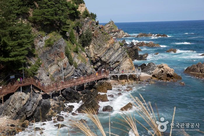 강원도 강릉 정동진 썬크루즈 주차장과 심곡항 사이에 2.86km의 탐방로가 놓여 있다. 바다를 곁에 두고 걷는 해안길이다. 해안 산책로를 중심으로 한쪽에는 광활한 동해와 기암괴석이, 다른 한쪽에는 멋스러운 해안 절벽이 펼쳐지니 가히 '천혜의 비경'이라 불릴 만하다. 자료출처 - 대한민국 구석구석(http://korean.visitkorea.or.kr) 펜션에서 총 33.5km, 차량으로 약 41분